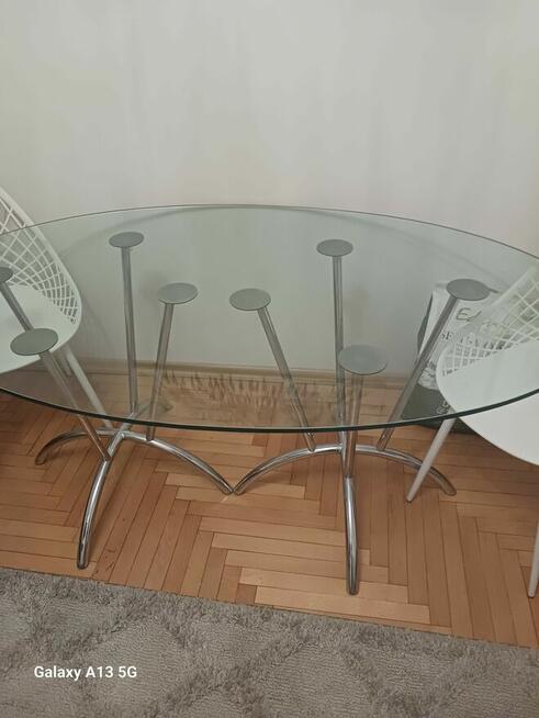 Sprzedam stół owalny długość 1,80 m szklany na nitowany srebrnych nogach wysoki